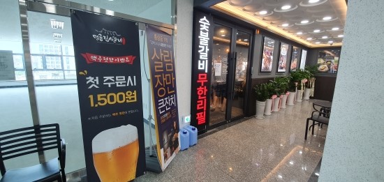 생맥주 첫잔 1500원 이벤트 중이었음.