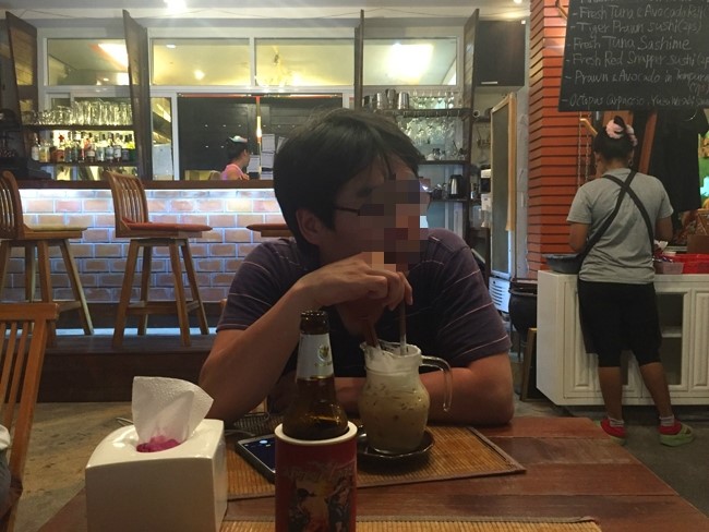 벌써 넷째날 아침... 싼 숙소라 조식이 없다. 그래서 그냥 숙소 부근 해변바에서 커피한잔 하러 나왔음 친구는 커피안마시고 저기 엎어져 누워있음 아침 먹으러 안쪽으로 들어왔음.. 어제 계속 눈에 띄던 엄청..