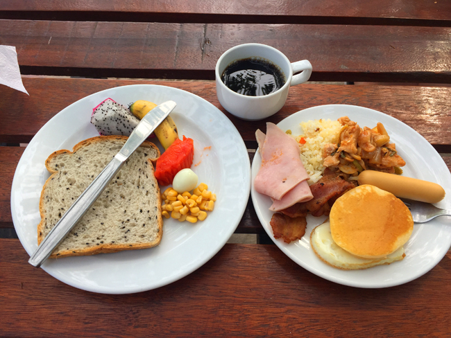 둘째날 아침 타이가 호텔 조식!!! 거의 모든 호텔이 태국식 뷔페로 나온다.. 팟타이(볶음국수)를 좋아해서 조식때마다 팟타이를 찾았는데 있었던 적이 없었던 것 같다.. (아무래도 면이다 보니 놔두면 불기때문이..