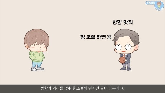 방향과 거리를 맞춰 힘조절해 던지면 골이 되는거야