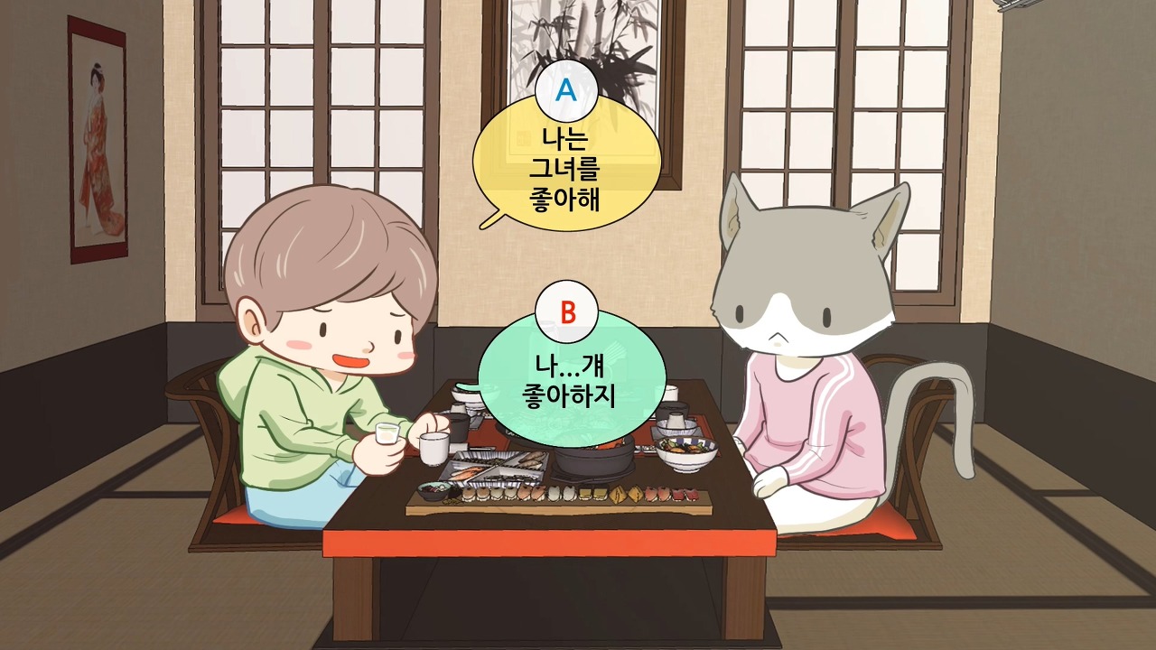 B : 나...걔 좋아하지
