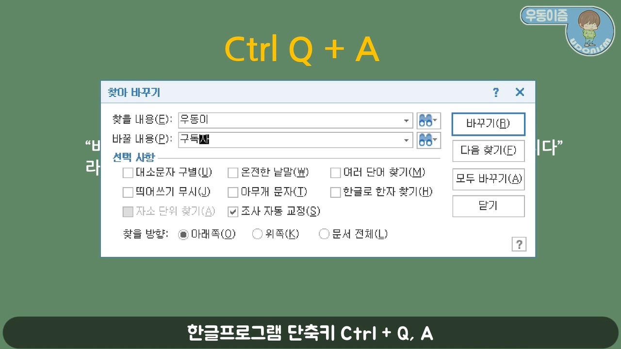한글프로그램 단축키 Ctrl + Q, A