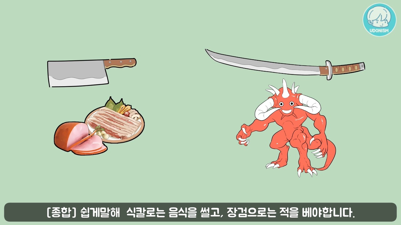 종합! 쉽게말해 식칼로는 음식을 썰고, 장검으로는 적을 베야합니다