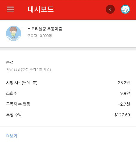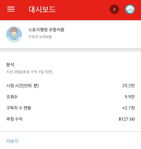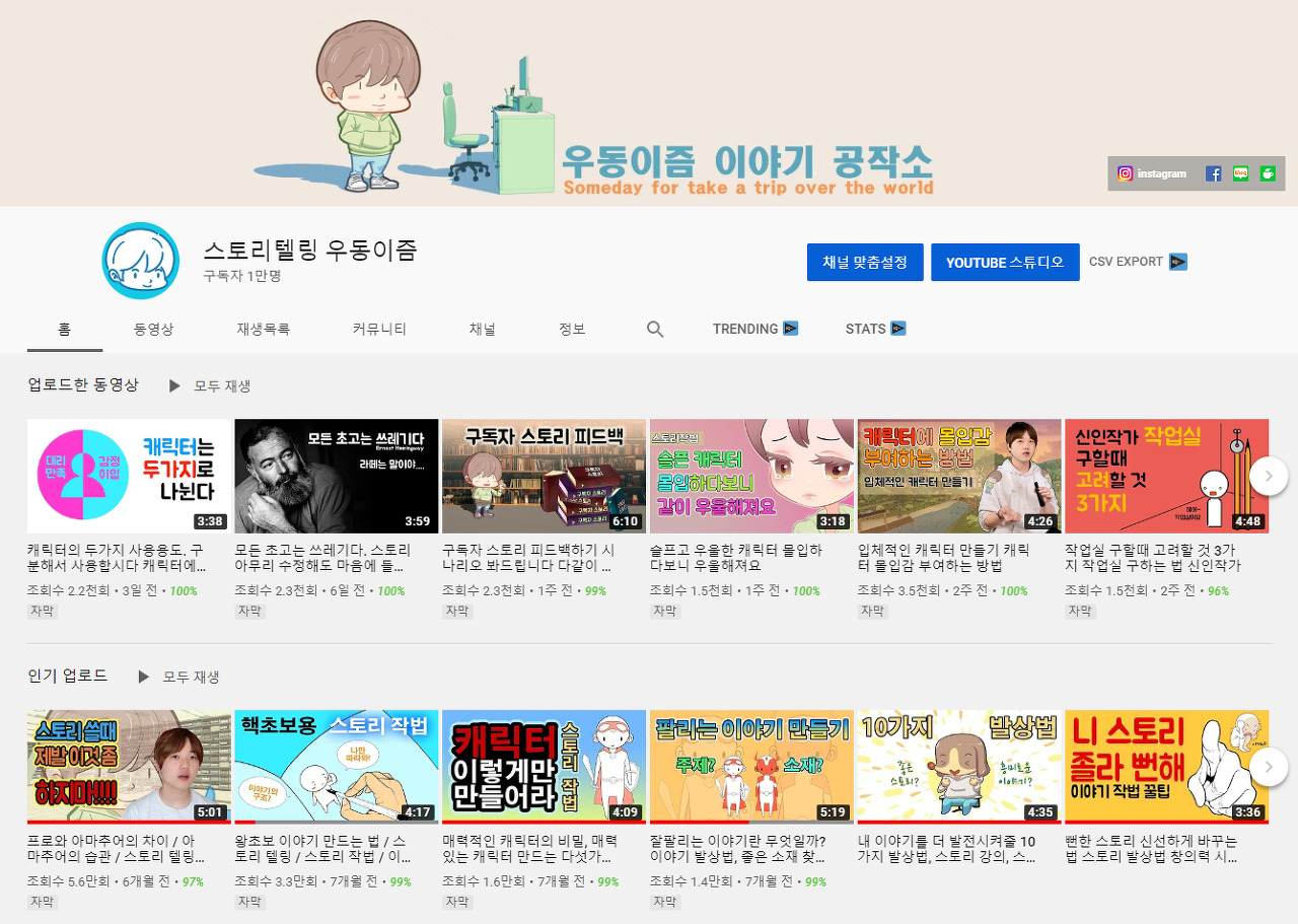 스토리텔링 채널 시작이후로는 7개월만의 만명 달성이다.