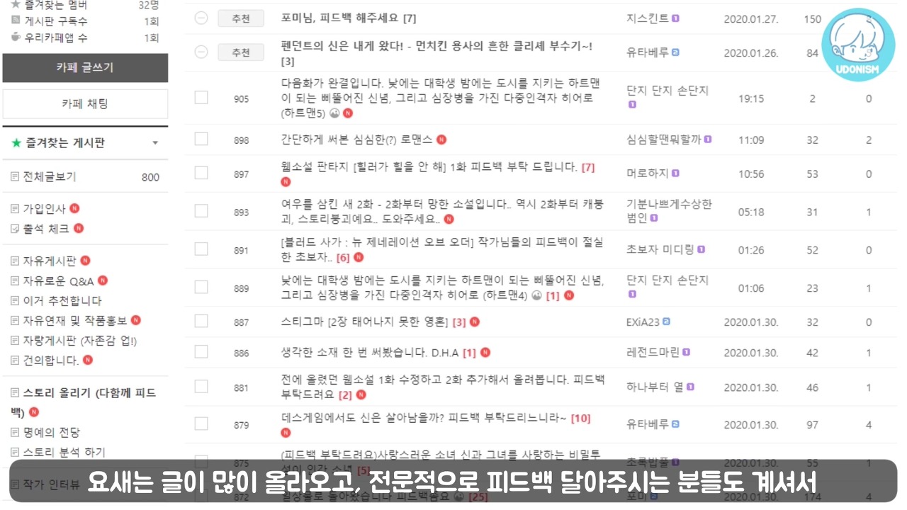 우동이즘 네이버 카페 지난번 첫 번째 구독자 피드백 시간에 말씀드렸었죠