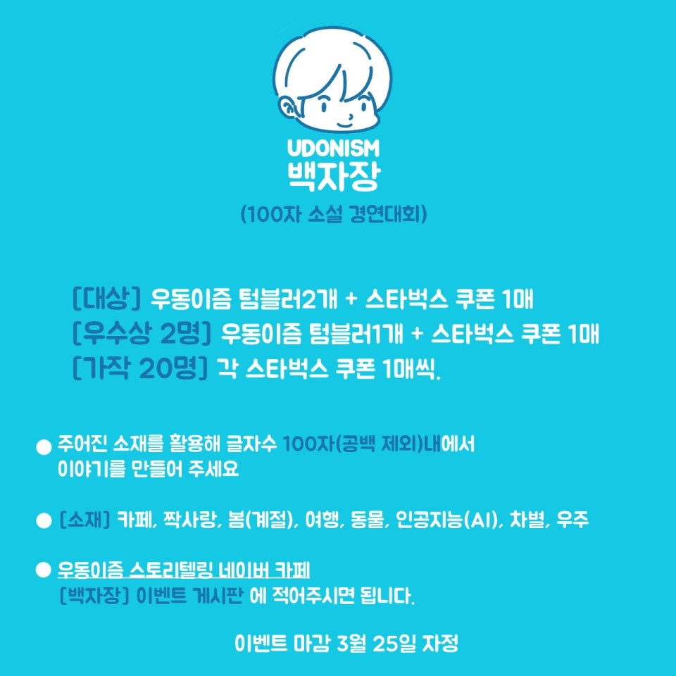 우동이즘 백자장(백일장)을 개최해 봅니다.
