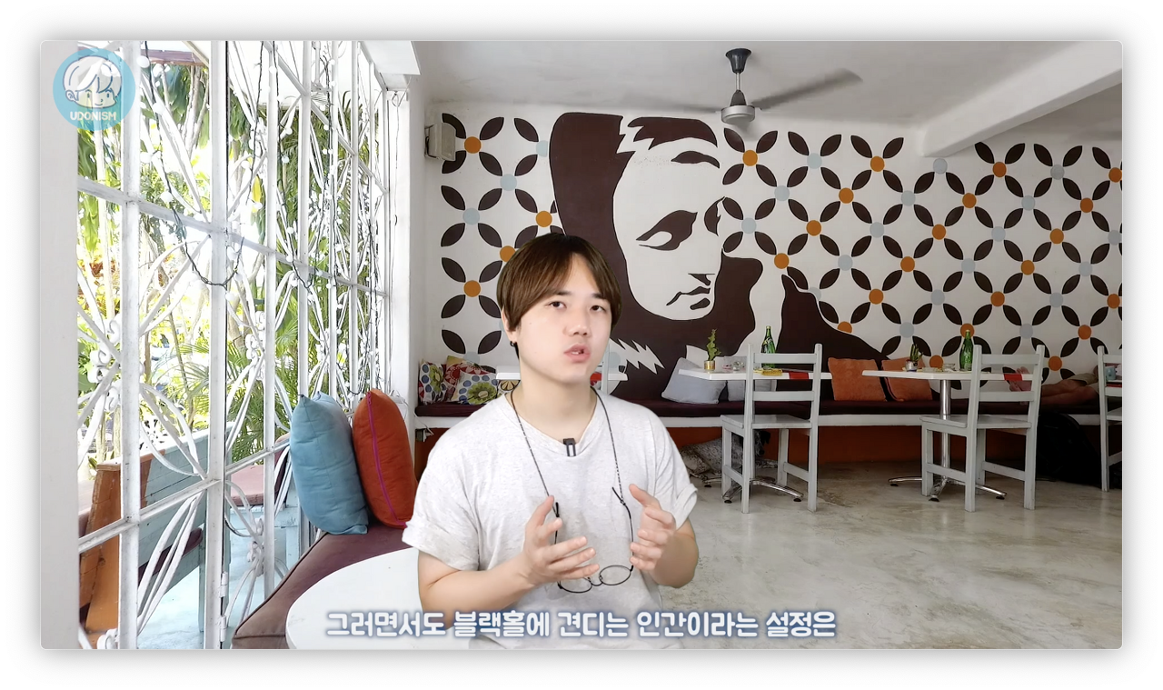 그러면서도 블랙홀에 견디는 인간이라는 설정은