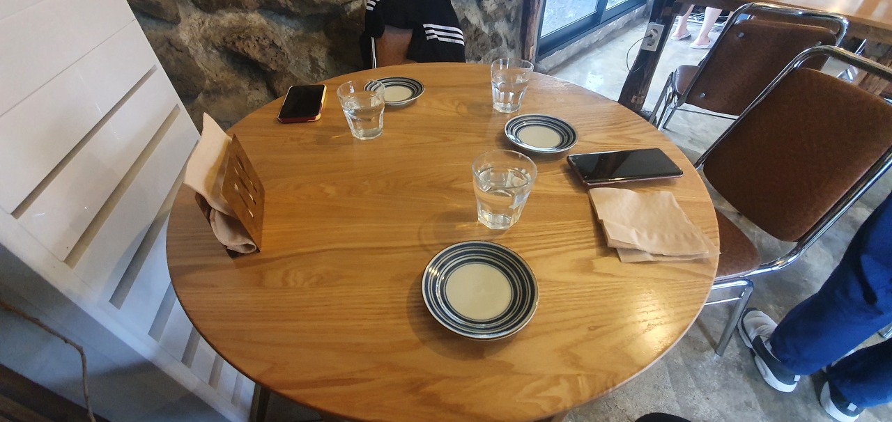손님이 중앙 테이블에 계셔서 우린 구석탱이로 쭈구리.