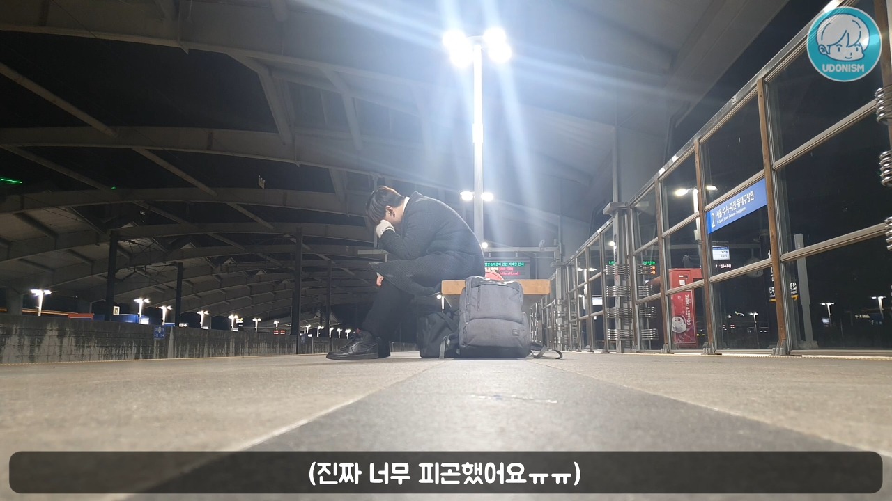 (실제로 피곤했지만, 카메라에 담기위해서는 카메라를 설치하고 피곤한 연기를 해야한다)
