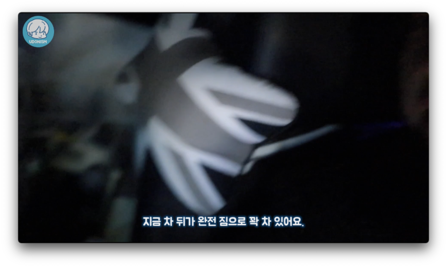 지금 차 뒤가 완전 꽉 차 있어요.