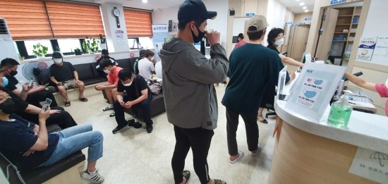 발열체크를 하고 간단한 설문지를 작성하고 기다리기 시작.