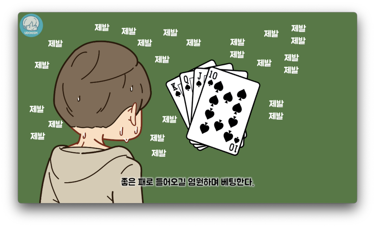 좋은 패로 들어오길 염원하며 베팅한다.