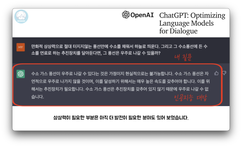 상상력이 필요한 부분은 아직 더 발전이 필요한 분야도 있어 보였습니다.