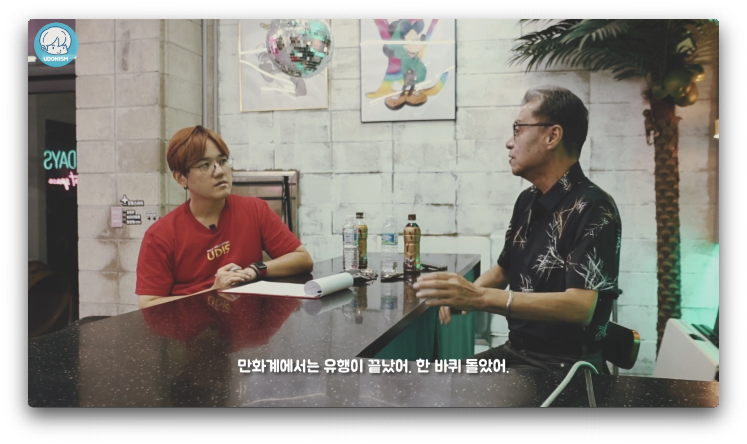 사실 트렌드를 따라 쓰는 건 별로 안 좋아해요. 안 좋아하고,트렌드를 만드는 걸 좋아해~아~ ㅋㅋㅋㅋㅋㅋㅋㅋ너무 먼 나라 얘기 같네요 저한테는박원빈 선생한테 드렸던 작품 중 하나가 <제2의 킬러>라는 작품이에요.현대 깡패들 이야기예요. (일본에서 벌어지는)그 깡패들 이야기에다가 [파리다카르 랠리] 이야기를 섞어서,형은 깡패고, 동생은 자동차 레이서.그게 나가서 또 히트를 쳤어요.그 뒤에 '김현'선생, '안철주'선생들 작품들을다 그런 류의 작품들을 줬어요, 조폭 얘기들 치고받는 얘기들.그랬더니 그 후에 나오는 일련의 만화들이몇 년간 그 트렌드로만 쭈욱 나오는 거예요.우리가 영화에서 나오는 명작으로 꼽는<황해> 라던지, <신세계>라던지,이런 것들은 좋은 작품 이잖아요?이게 유행하기 이미 10년 전, 15년 전에만화계에서는 유행이 끝났어. 한 바퀴 돌았어.그 선두주자가 감히 저라고 얘기할 수 있겠죠.ㅋㅋㅋㅋㅋㅋㅋㅋㅋㅋㅋㅋ플렉스 군요 일종의?예전에 나왔던 <비트> 라거나, <친구> 라거나 그런 것들도 다 영향을 받은 작품들 이겠죠?최근에는 [미스터 블루]에서도 연재하고 계시잖아요?물론 출판 형태로 볼 수 있긴 한데,어쨌든 웹에서 출시가 되고 있는데,이런 건 어떠세요? 느낌이?이게 장점이기도 하고, 단점이기도 한데, 금방금방 피드백을 알 수 있잖아요.아~ 네네 / 댓글을 쓰니까.