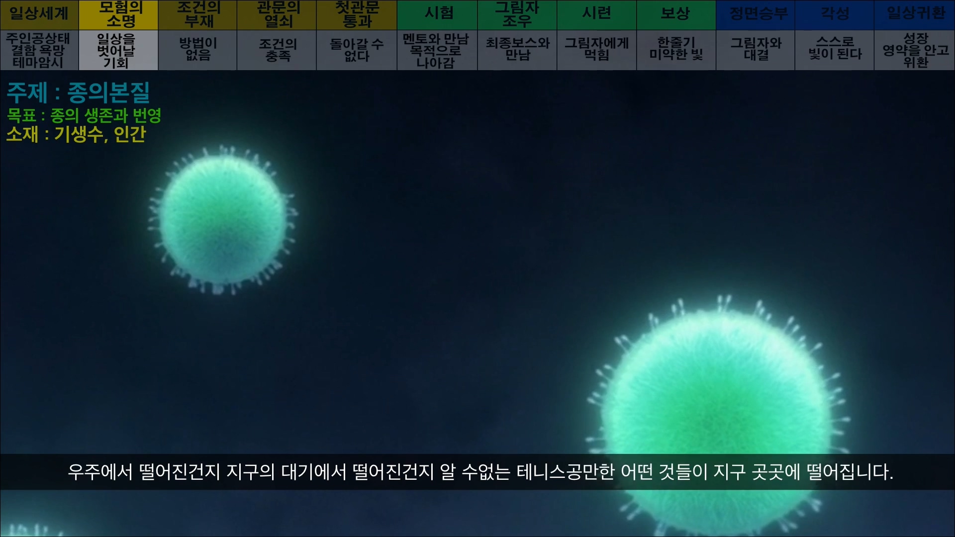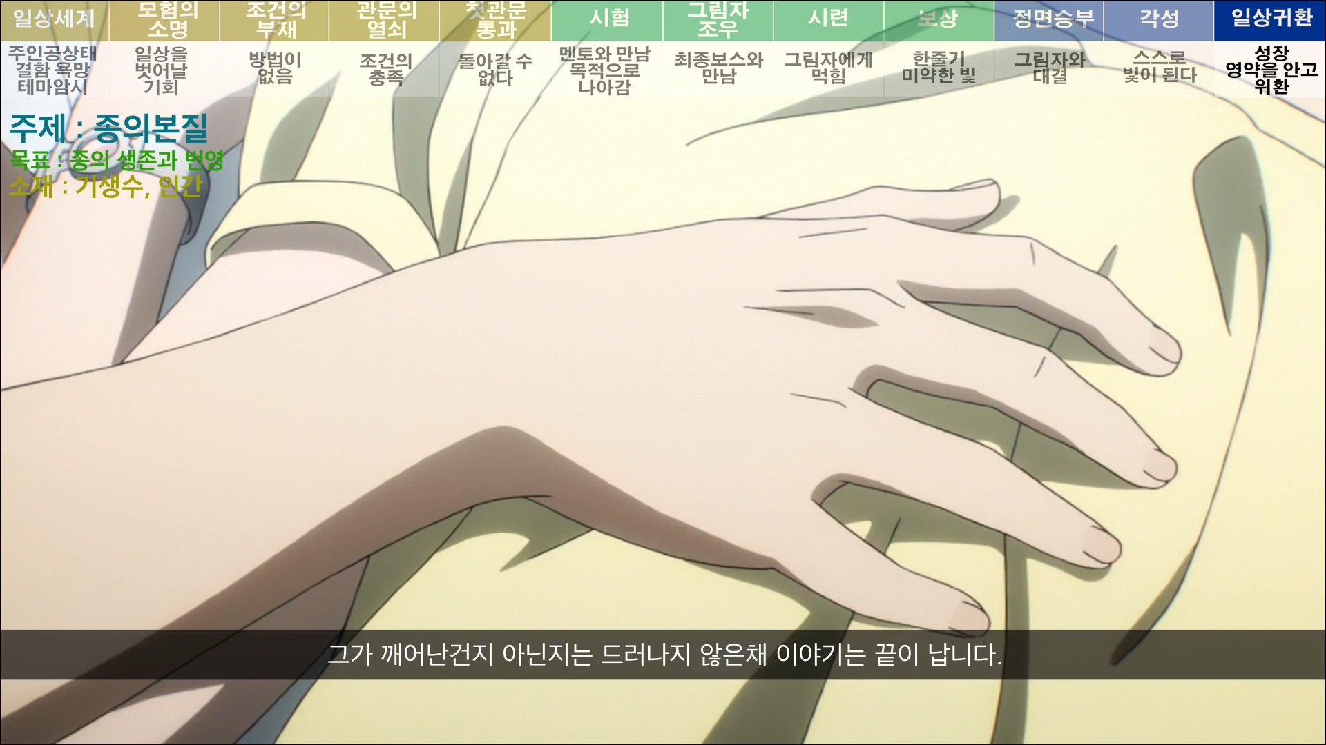 이번엔 이야기의 구조보다 주제에 더 촛점을 맞추어 분석해 보았습니다.