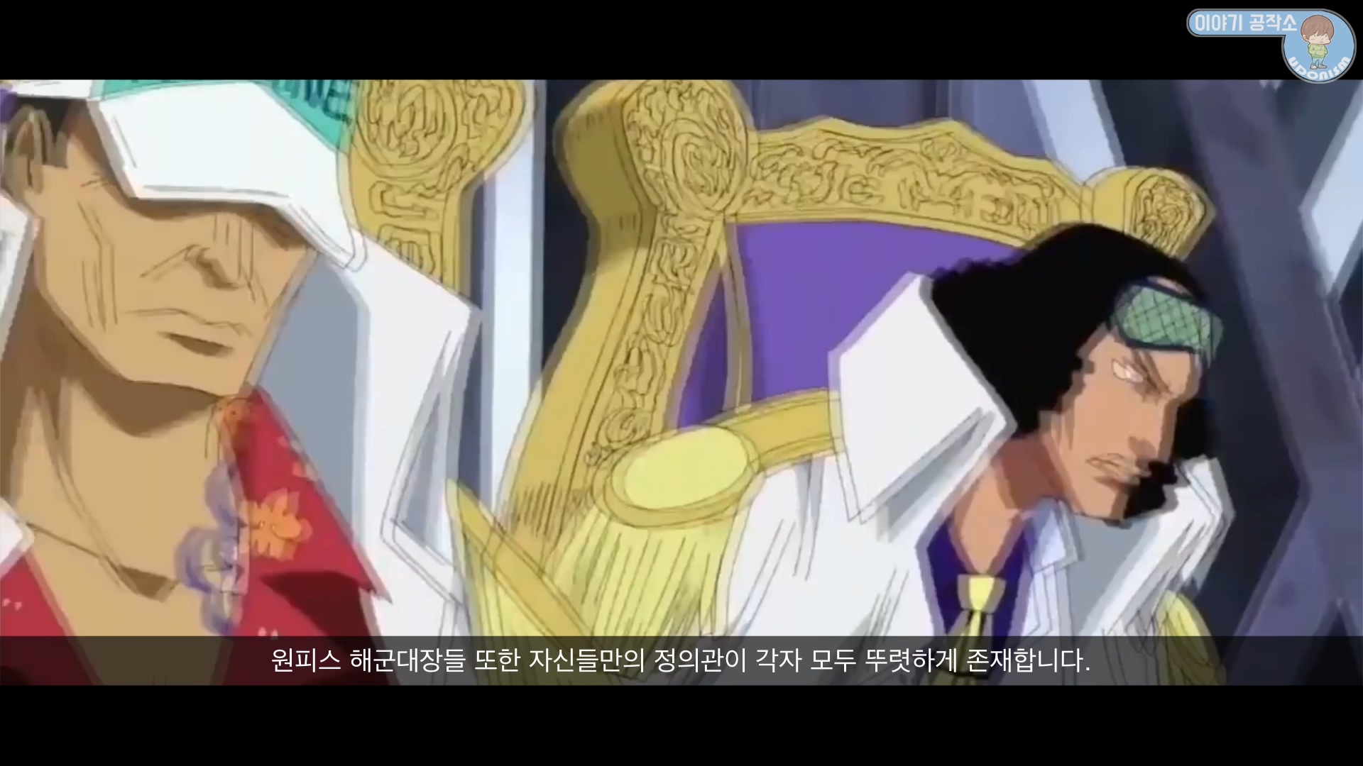 작품을 이끌어 가는 목표를 가진 프로타고니스트 주인공이죠그에 대항하는 악역에 해당하는 안타고니스트모든 매력적인 인물은 매력적인 목표와 드라마를 가지고 있습니다.대상 연령층이 낮은 전대물의 경우 악당은 주인공에게 줘터지는 역할일뿐최도한 청소년 이상의 성인대상층을 노리고 있다면심지어 듣다보면 틀린말은 아닌 것 같기도... 하는 생각마저 듭니다.작가는 어느 누구에게도 치우치지 않고, 명확한 해답이 없는 가치관들 사이에서대립을 일으키고 극을 이끌어 갑니다.원피스 해군대장들 또한 자신들만의 정의관이 각자 모두 뚜렷하게 존재합니다.다시말해 작가는 주인공과 악역 사이에서 한쪽 편을 들어서는 안된다는 말이기도 합니다.작가는 철저히 안타고니스트와 프로타고니스트 둘 모두의 목표를 소중히 해야 합니다.만약 당신의 스토리에서 매력적인 안타고니스트 매력적인 악역이 존재하지 않는다면명작은 항상 회색지대 어딘가에 존재해왔기 때문이죠.
