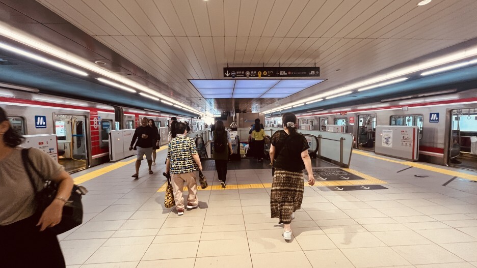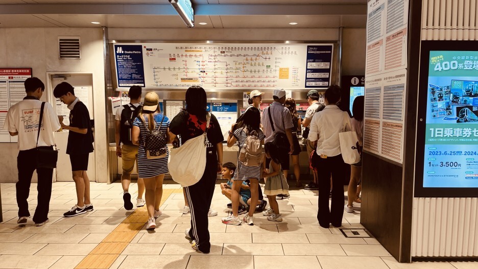 -신사이바시 역에서 미도스지선(빨간선)을 타고 신오사카 역으로 먼저 가야한다.
