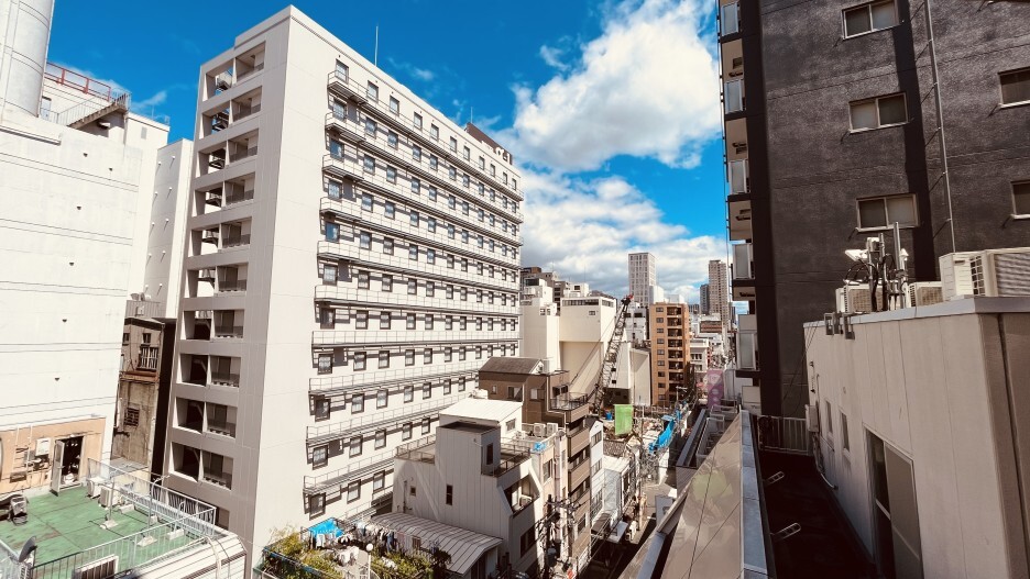 맞은 편 건물의 벽만 보인다.